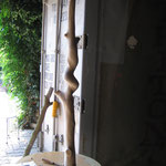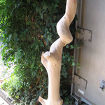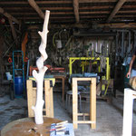 Ausgehend von den Proportionen und den Wachstumsmerkmalen, wie Astansatz oder Drehung eines Rundholzstückes wird eine Form herausgearbeitet, die entweder eine figurativen oder einen abstrakten Ausdruck hat.