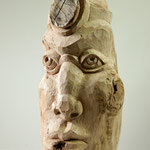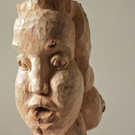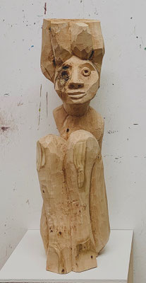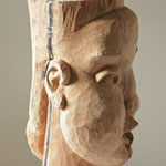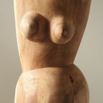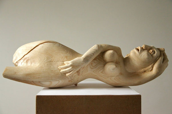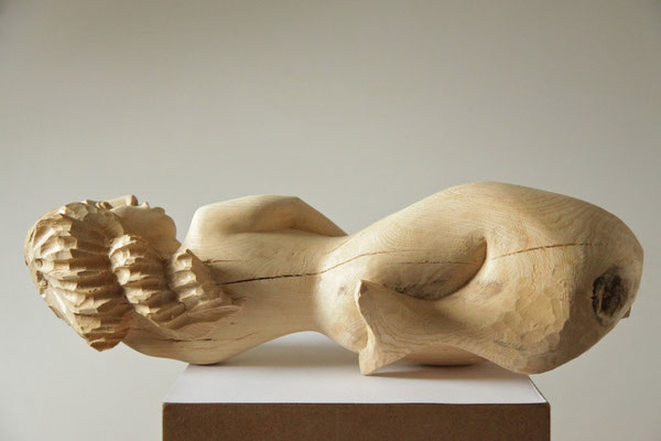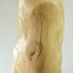 Das Wachstum und die Maserung eines Baumstammes bestimmen im Dialog die Form mit; sein "Körper" beseelt die Skulptur.