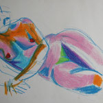 Flächen oder räumlich plastische Andeutungen von Licht und Schattn verdichten einzelne Elemente der Zeichnung wie ein Gericht oder die Hände z.B. und schaffen auf diese Weise eine Betonung und eine innere Verbindung zu den plastischen Arbeiten.